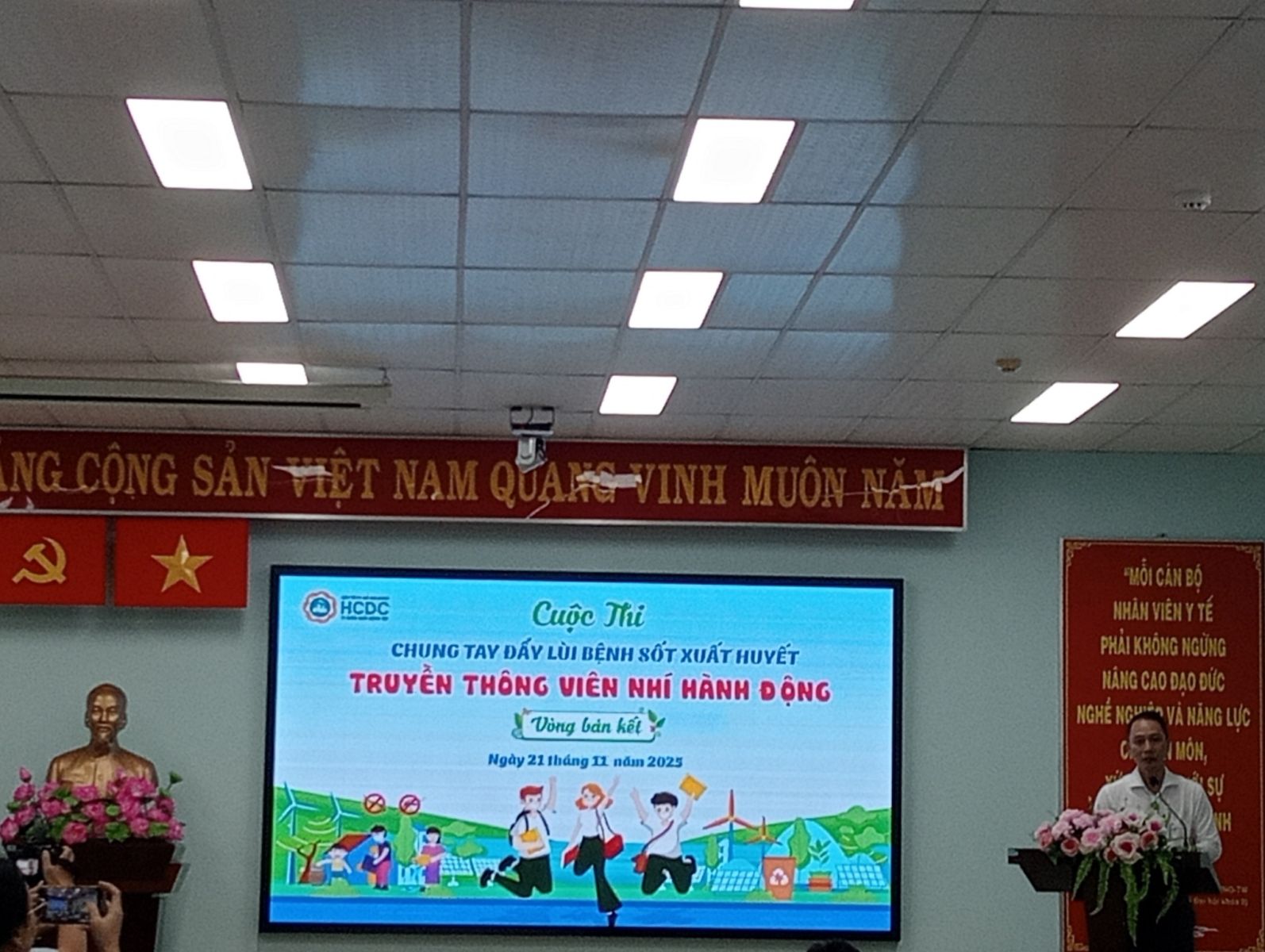 Sáng ngày 21/11/2025, Trường THCS Long Trường đã tham gia vòng bán kết hội thi “Truyền thông viên nhí – Hành động cùng chúng tay phòng chống bệnh sốt xuất huyết” do Sở Y tế TP. Hồ Chí Minh tổ chức. Đây là sân chơi bổ ích, thiết thực, giúp học sinh phát huy vai trò là những “đại sứ truyền thông” trong công tác phòng chống dịch bệnh, đặc biệt là bệnh sốt xuất huyết – một trong những thách thức y tế cộng đồng lớn hiện nay.